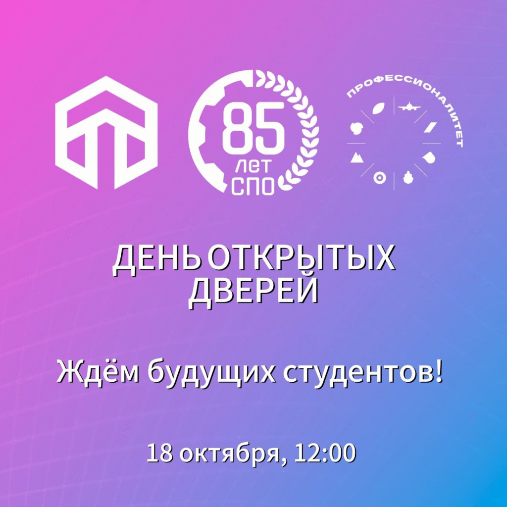 Спешите к нам! 18 октября 2025 года в 12:00 в Пермском техникуме промышленных и информационных технологий им. Б.Г. Изгагина пройдет Единый день открытых дверей в рамках федерального проекта «Профессионалитет».Это — уникальный шанс для школьников и их родителей узнать больше о выборе профессии, который откроет двери в будущее! Мы подготовили для вас незабываемые мастер-классы по специальностям «Машиностроение», «Информационные технологии».